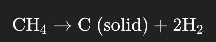 Outside of biological processes, hydrogen can also be isolated through the separation of methane, known as Methane Pyrolysis, which produces so called ‘blue’ hydrogen. This process involves heat/plasma as a reactant, rather than oxygen, and does not release any Carbon Dioxide into the atmosphere if done correctly with the proper precautions in place. The equation for this process can be seen below: